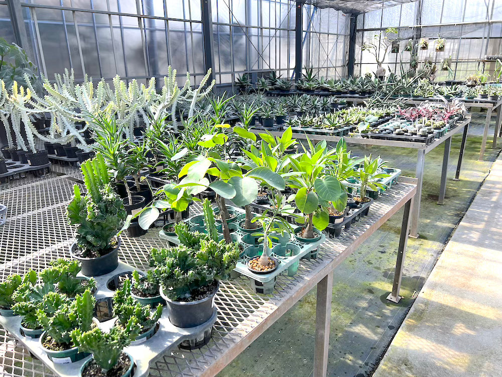 店舗の隣には温室(ビニールハウス)が併設されており、そこでも植物をご覧いただけます。
