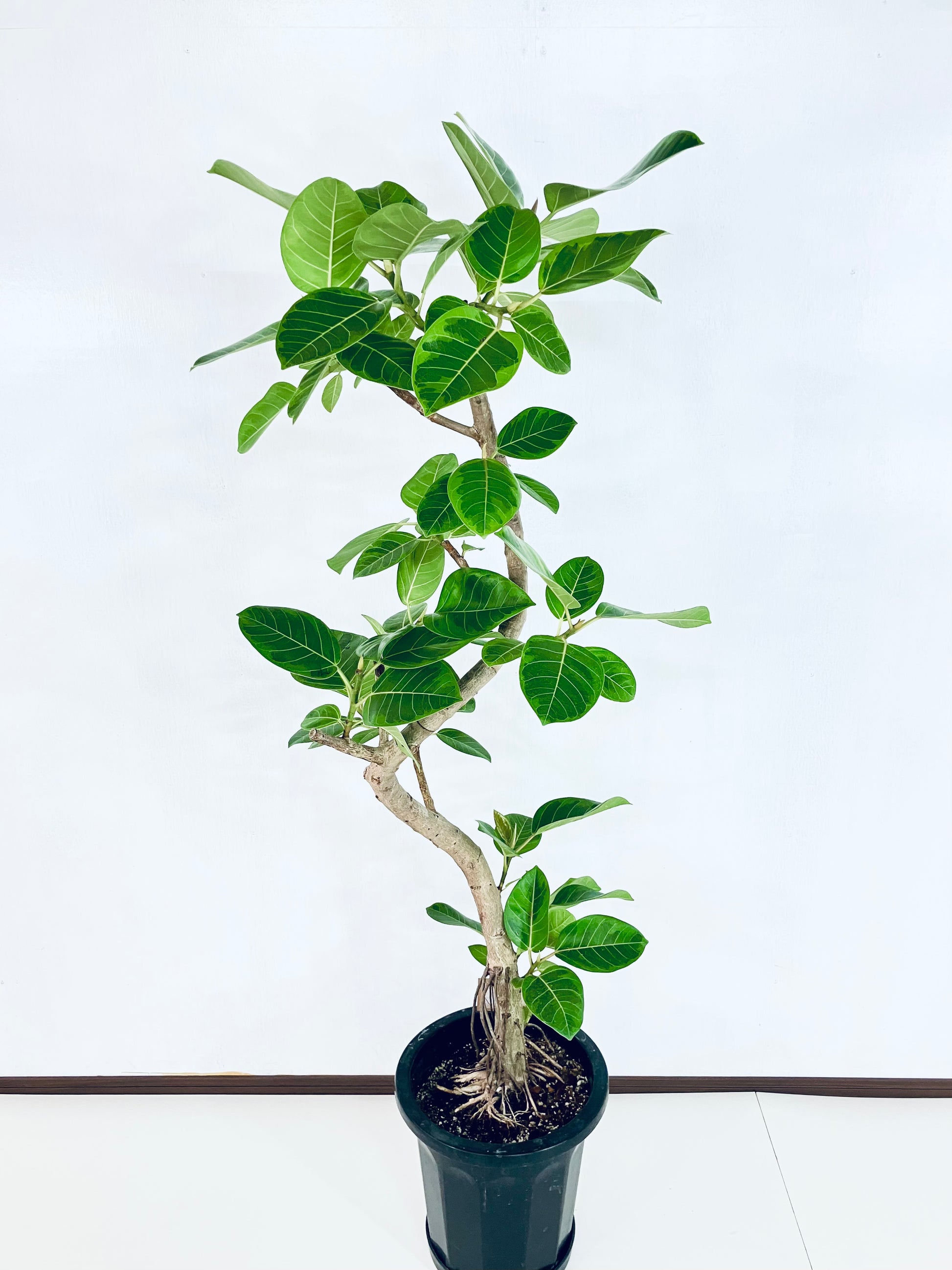 アルテシマは鮮やかな黄色い斑が特徴の、人気の観葉植物です。ゴムの木の仲間で生長が早く、沖縄では外で育てることも可能です。10号サイズは室内でかなり迫力のある大きさです。