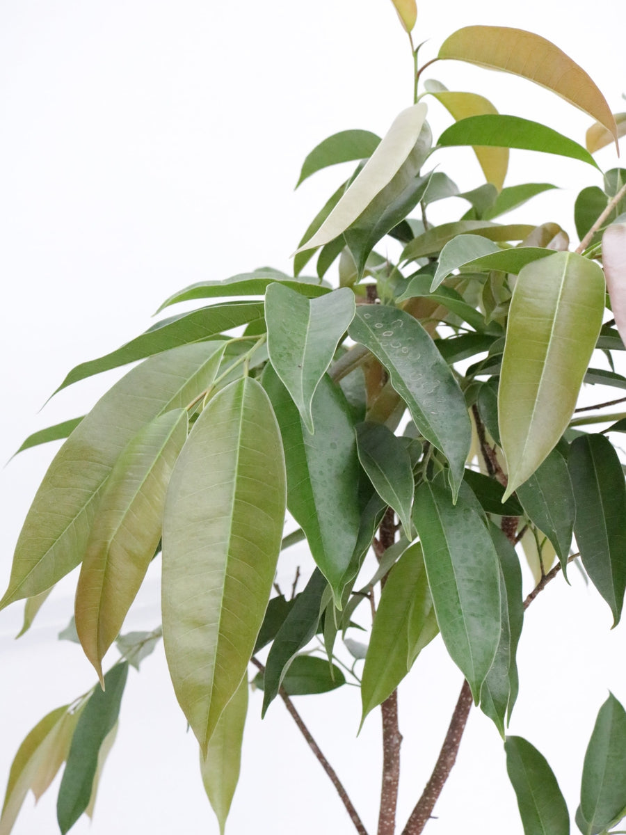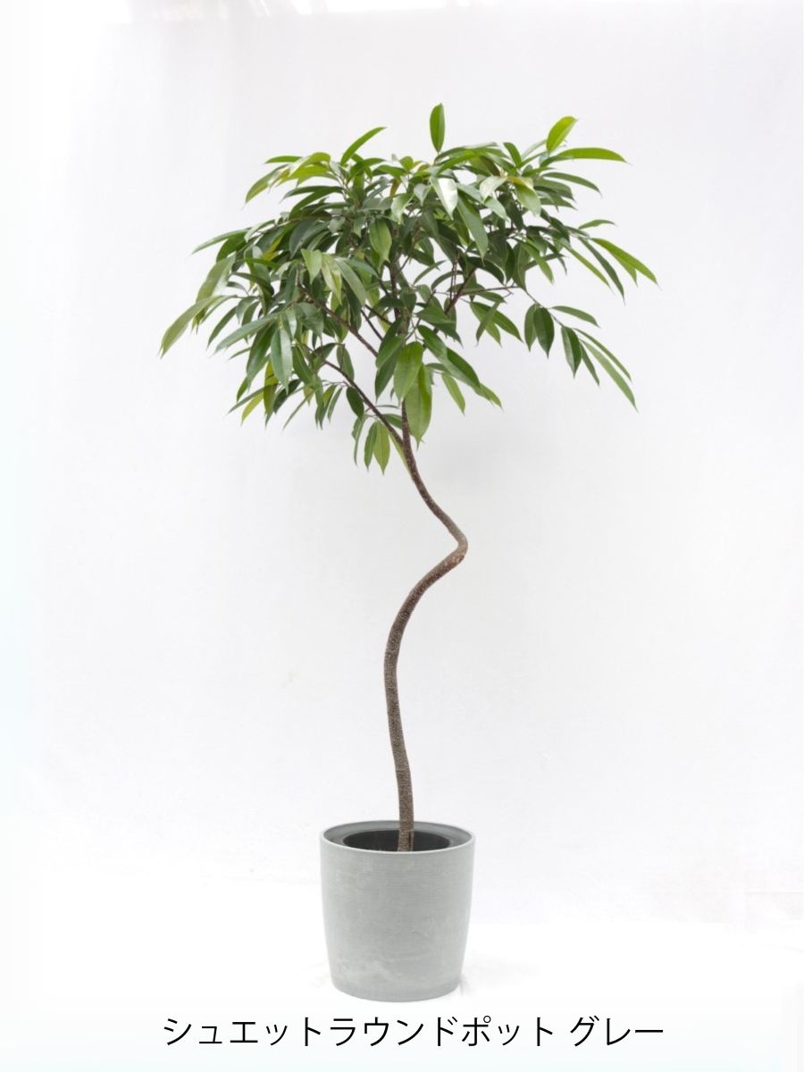 アムステルダムは枝垂れる樹形が特徴のゴムの木です。曲げのような繊細な樹形からボリューム重視の茂った樹形まで、フォルムを楽しめます。8号サイズは室内で存在感があるサイズです。