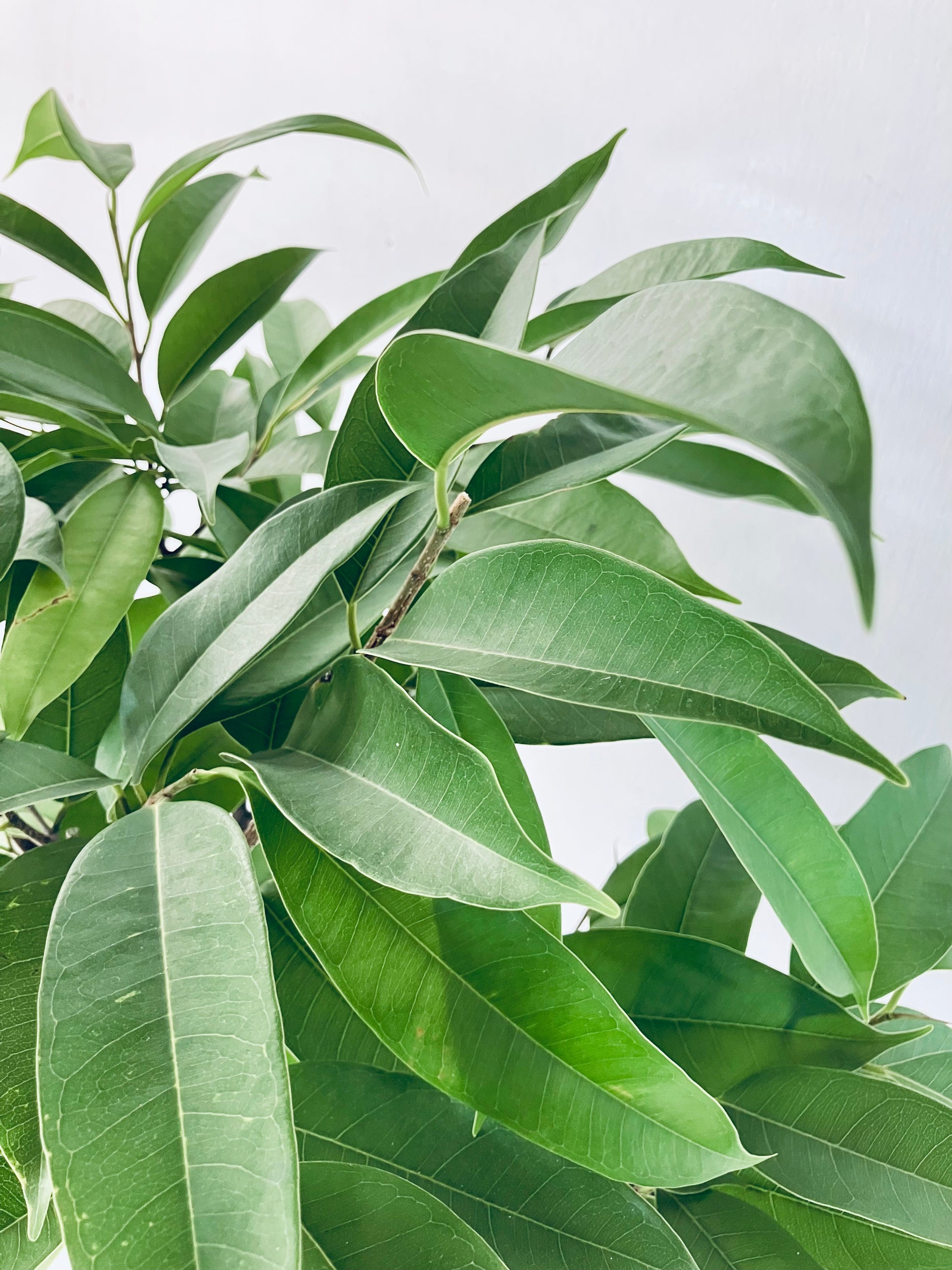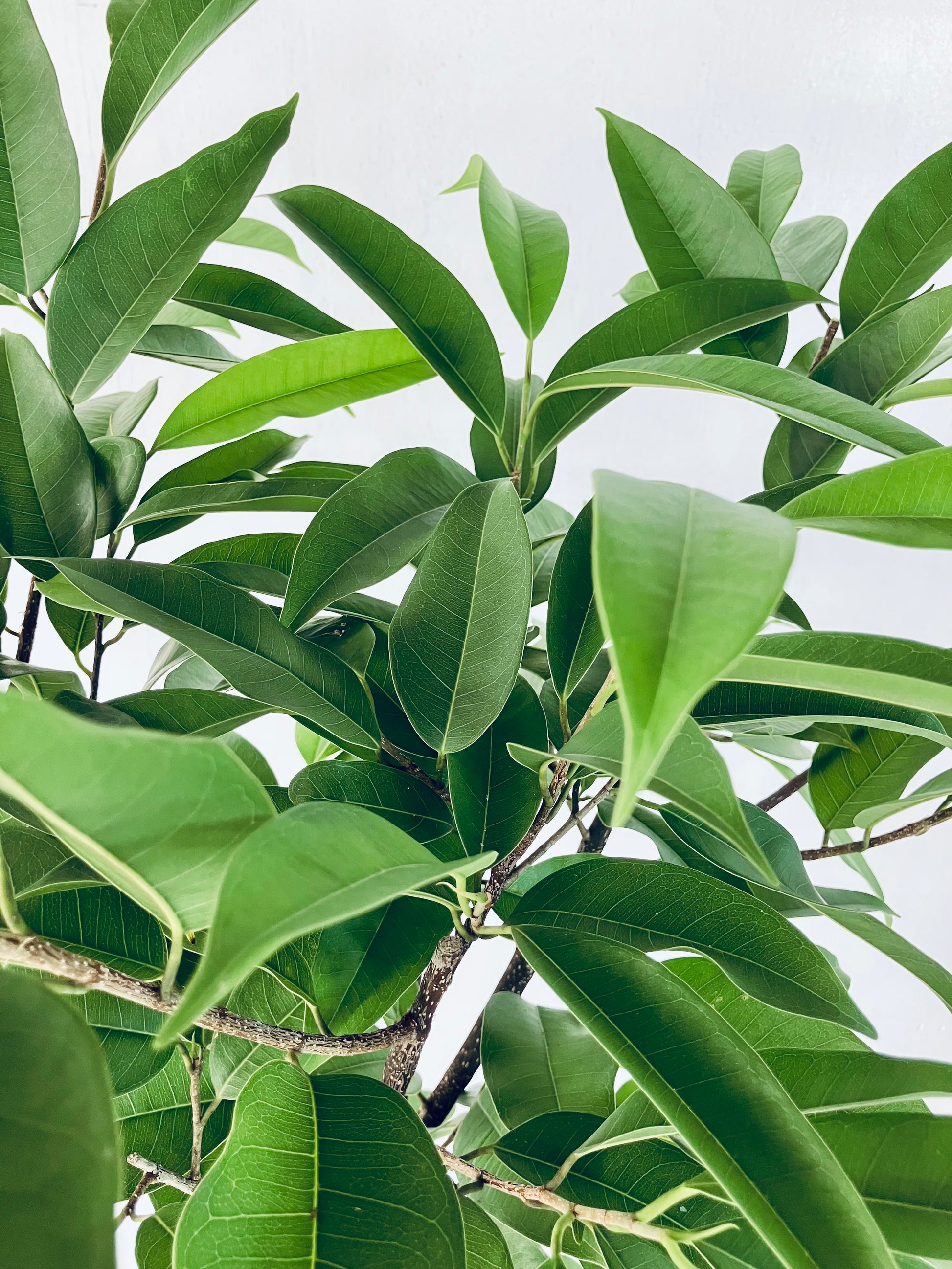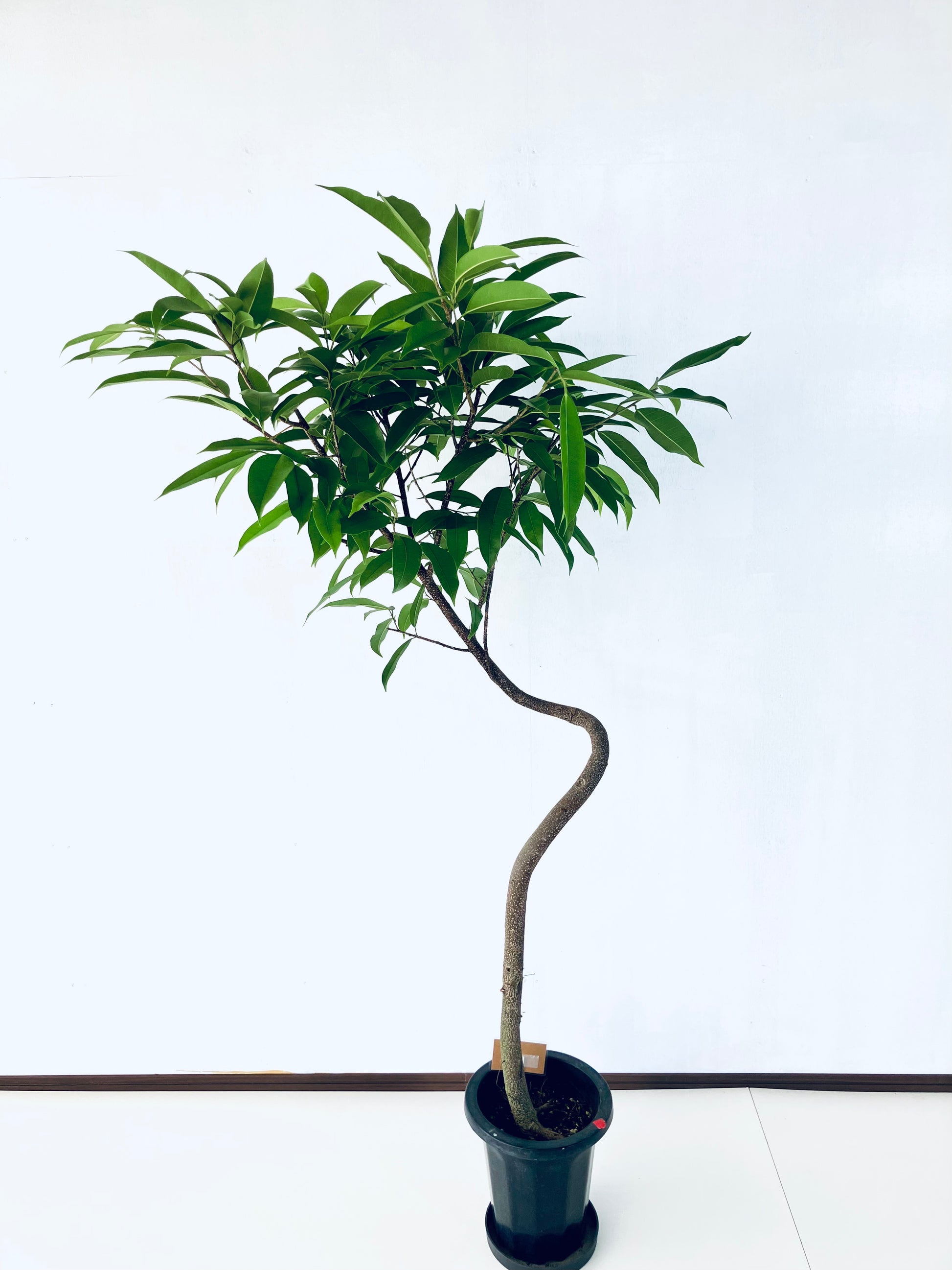 アムステルダムは枝垂れる樹形が特徴のゴムの木です。曲げのような繊細な樹形からボリューム重視の茂った樹形まで、フォルムを楽しめます。8号サイズは室内で存在感があるサイズです。