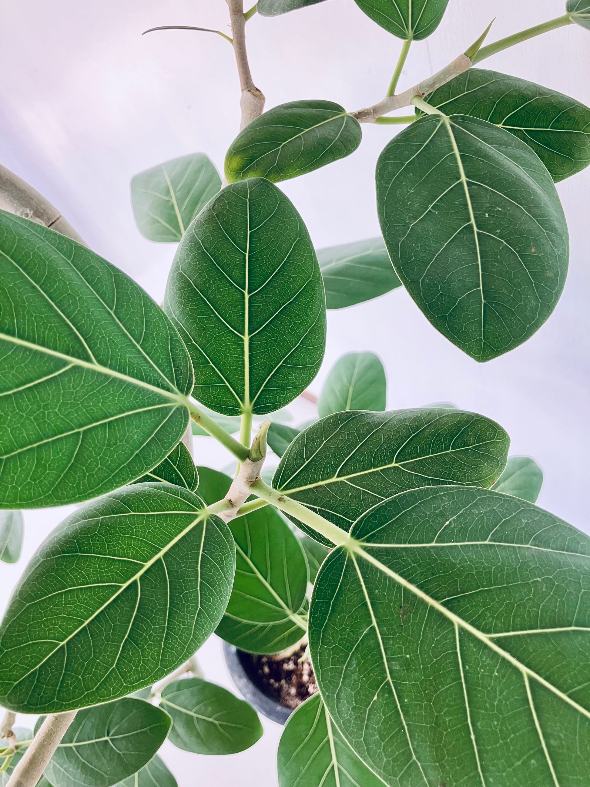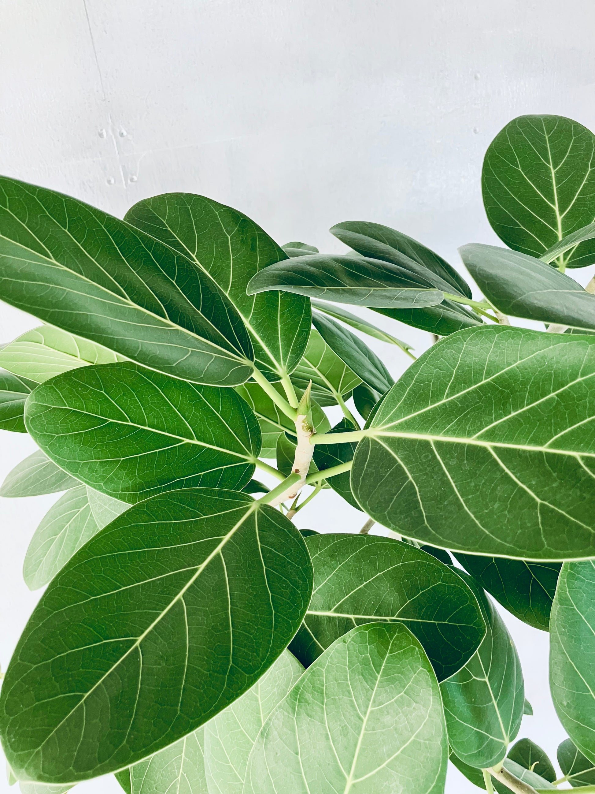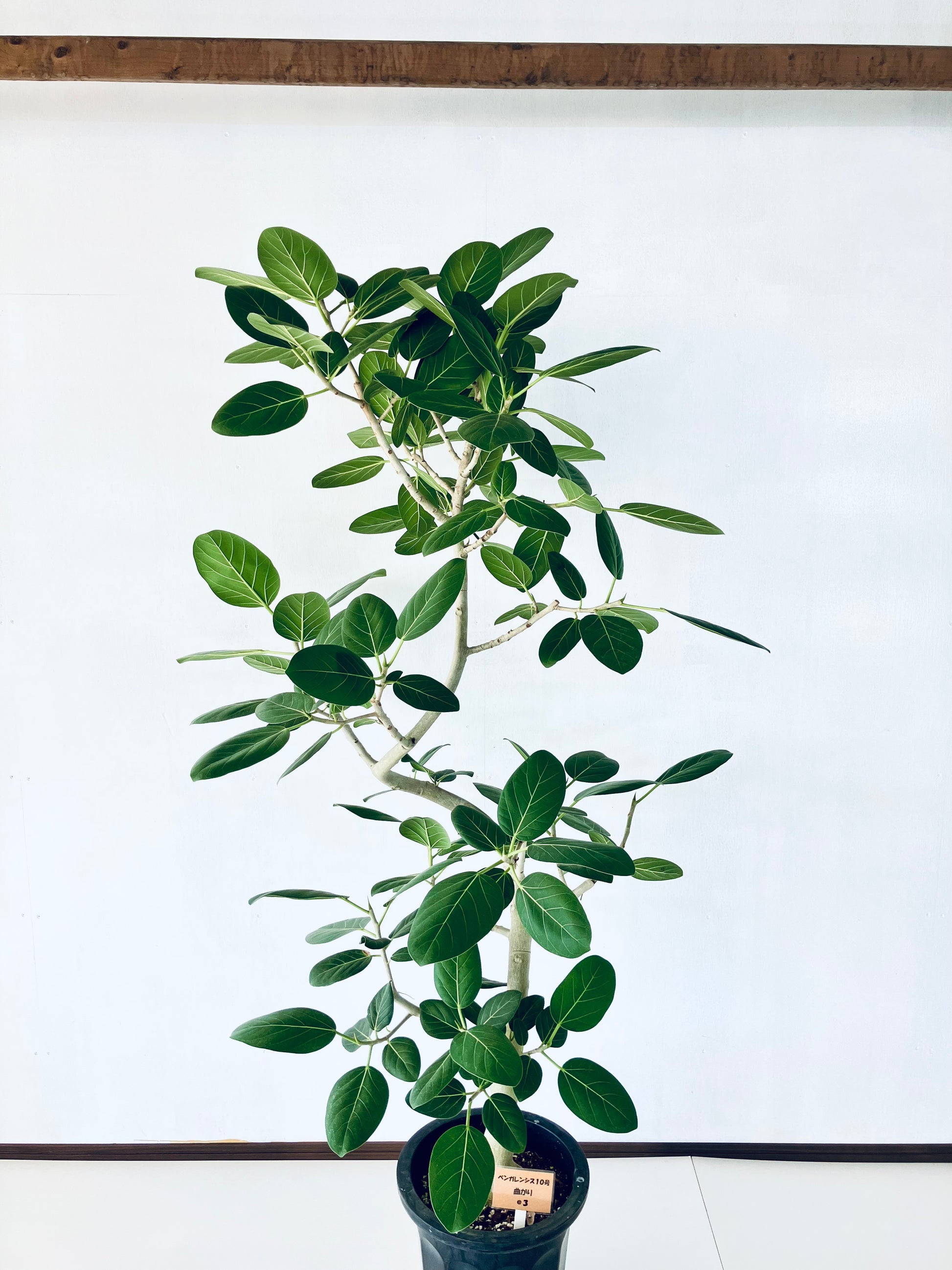 ベンガレンシスは丸い葉と白い幹が特徴の人気の観葉植物です。ゴムの木の仲間で生長が早く、育てやすい品種です。10号サイズは室内でかなり迫力のある大きさです。