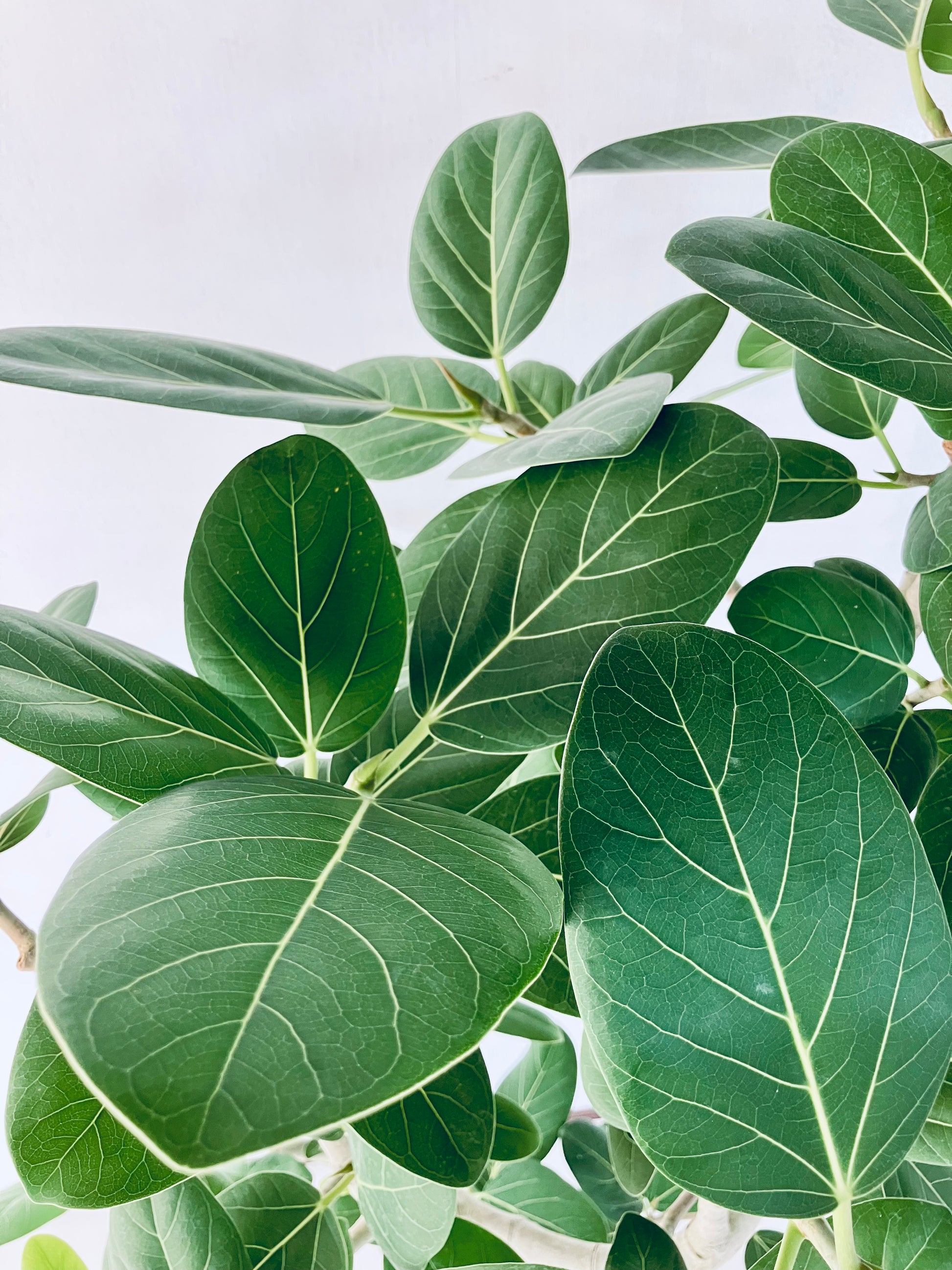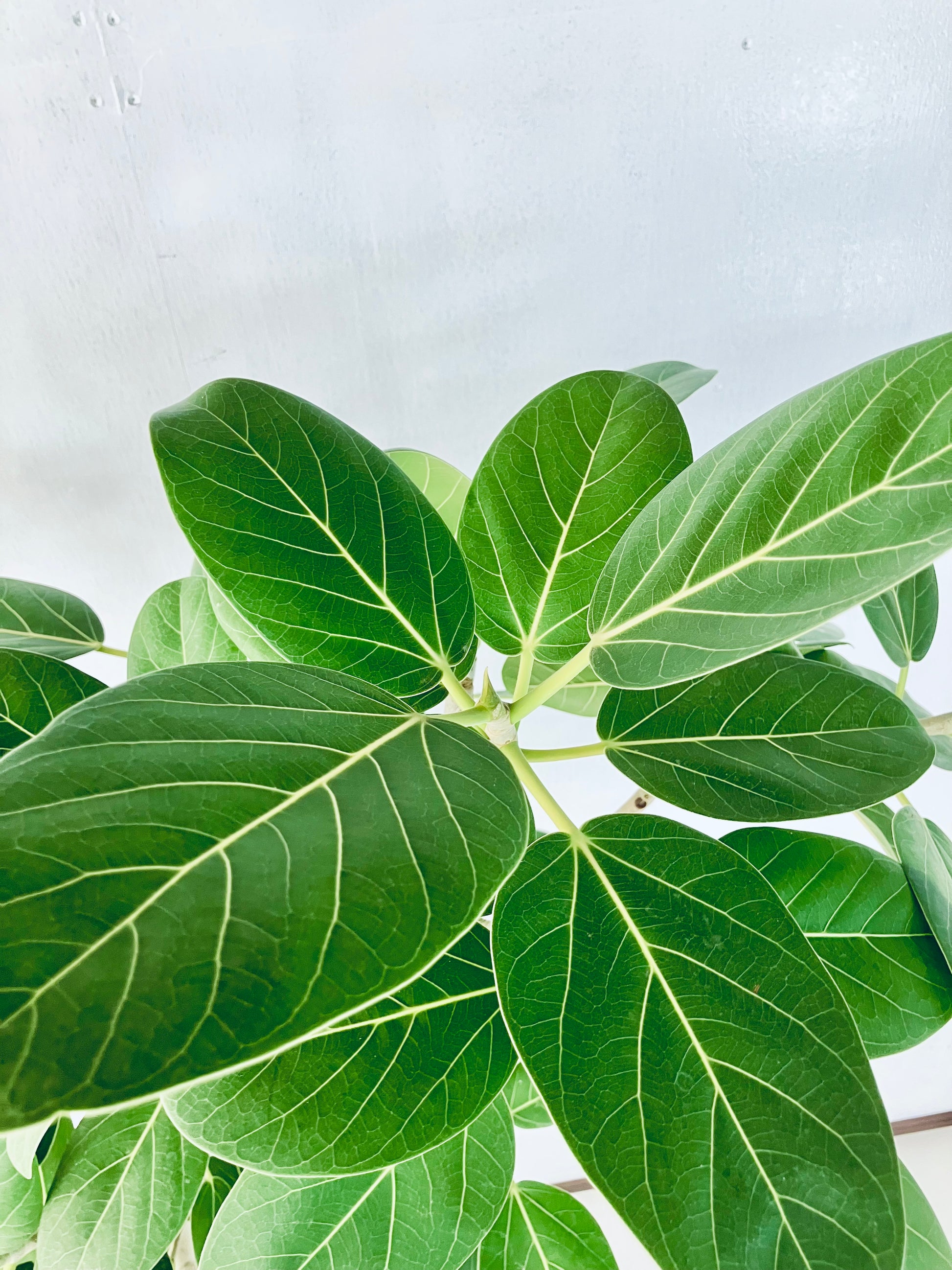 ベンガレンシスは丸い葉と白い幹が特徴の人気の観葉植物です。ゴムの木の仲間で生長が早く、育てやすい品種です。10号サイズは室内でかなり迫力のある大きさです。