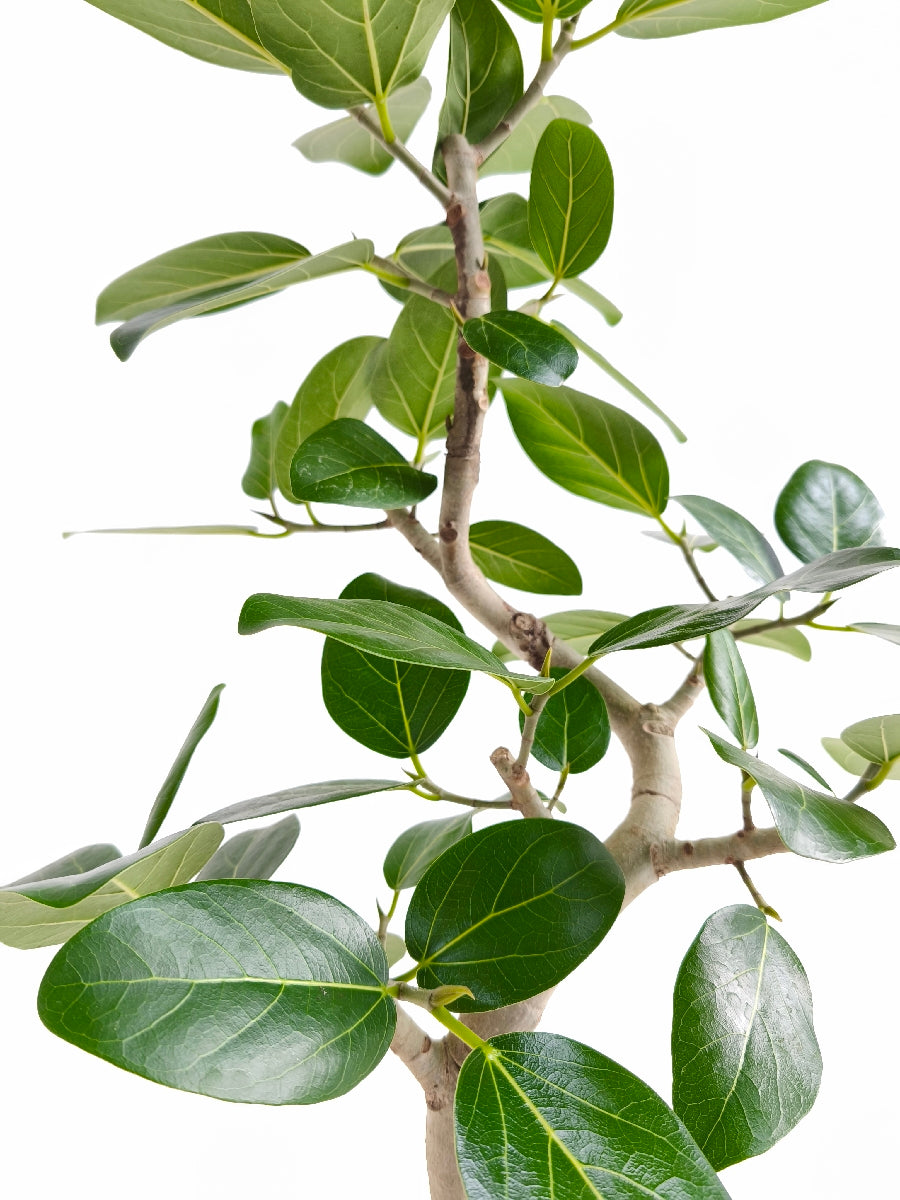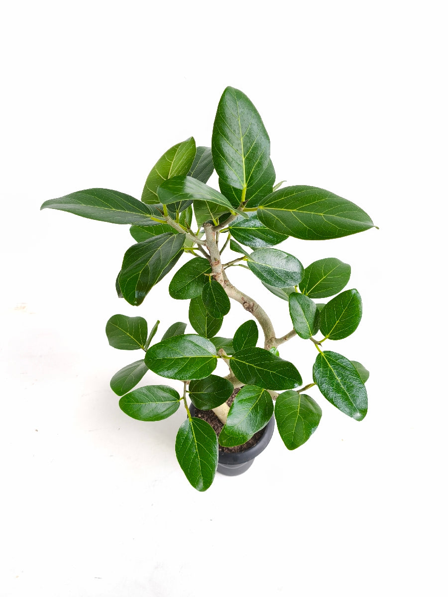 ベンガレンシスは丸い葉と白い幹が特徴の人気の観葉植物です。ゴムの木の仲間で生長が早く、育てやすい品種です。6号サイズは室内に飾るのにちょうどいい大きさです。