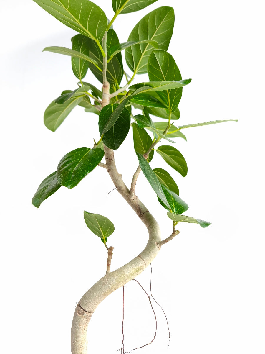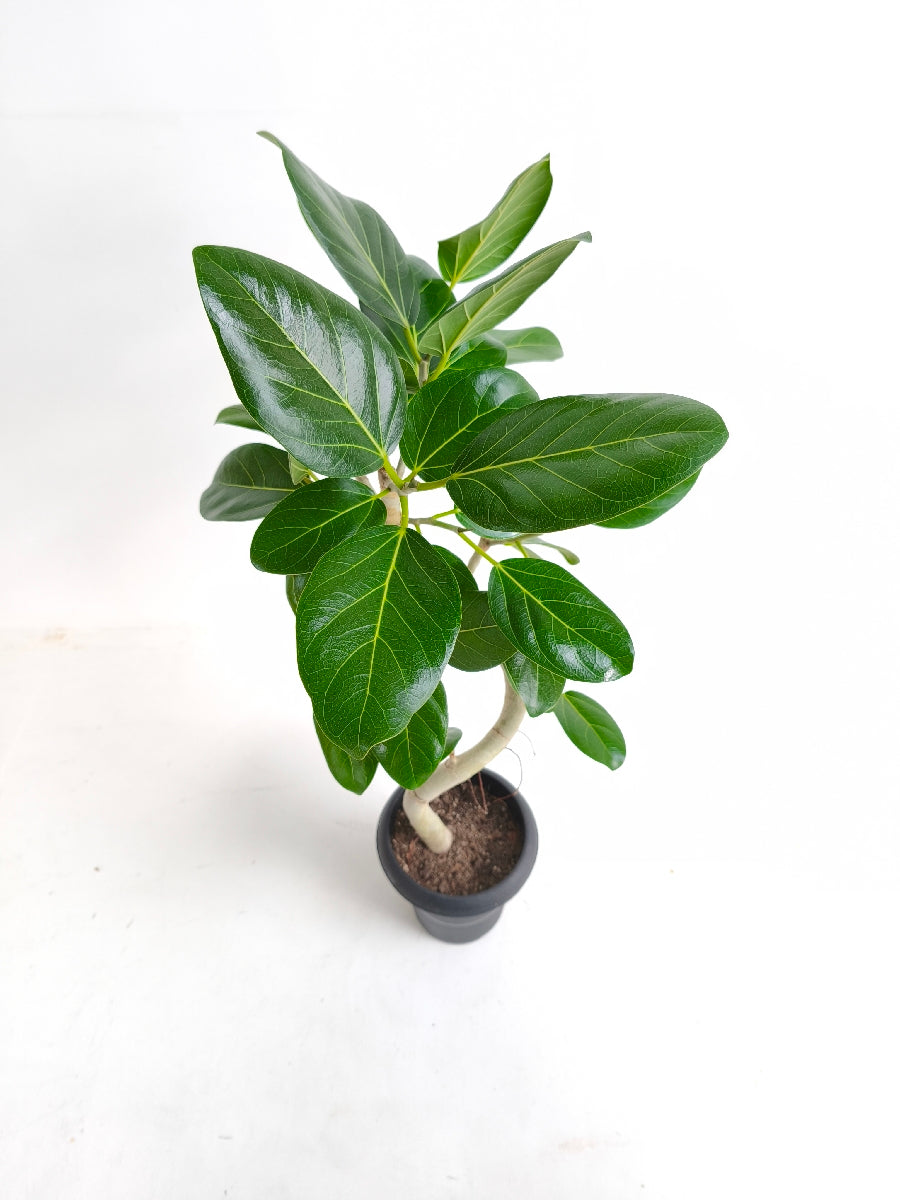 ベンガレンシスは丸い葉と白い幹が特徴の人気の観葉植物です。ゴムの木の仲間で生長が早く、育てやすい品種です。6号サイズは室内に飾るのにちょうどいい大きさです。