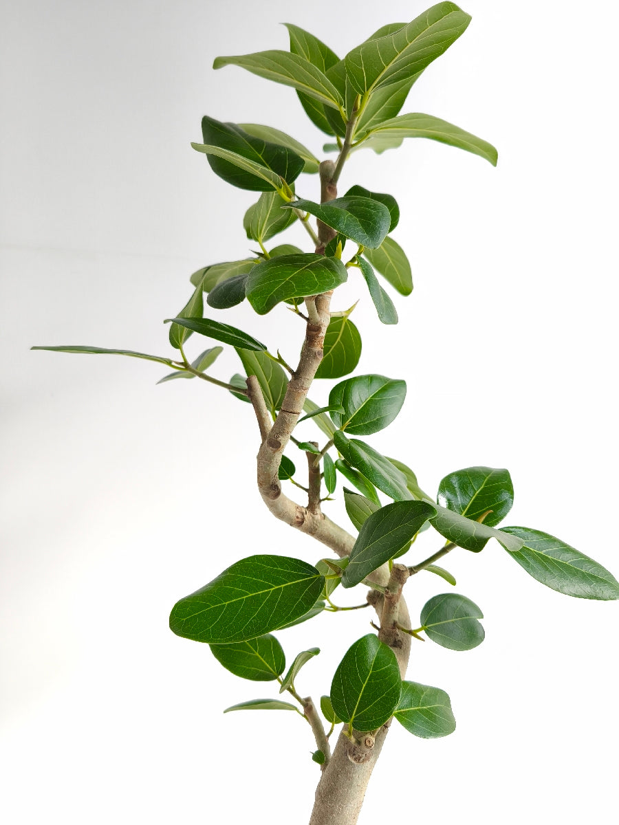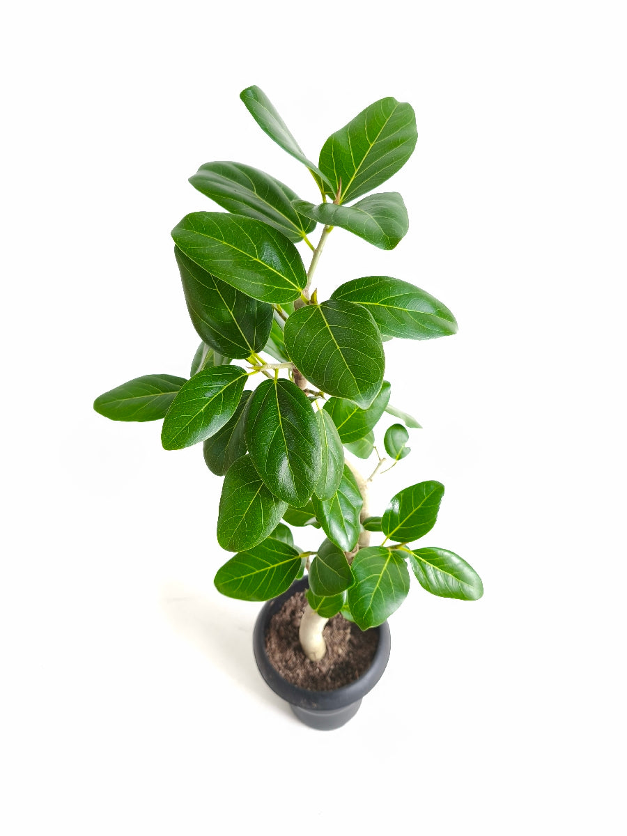 ベンガレンシスは丸い葉と白い幹が特徴の人気の観葉植物です。ゴムの木の仲間で生長が早く、育てやすい品種です。6号サイズは室内に飾るのにちょうどいい大きさです。