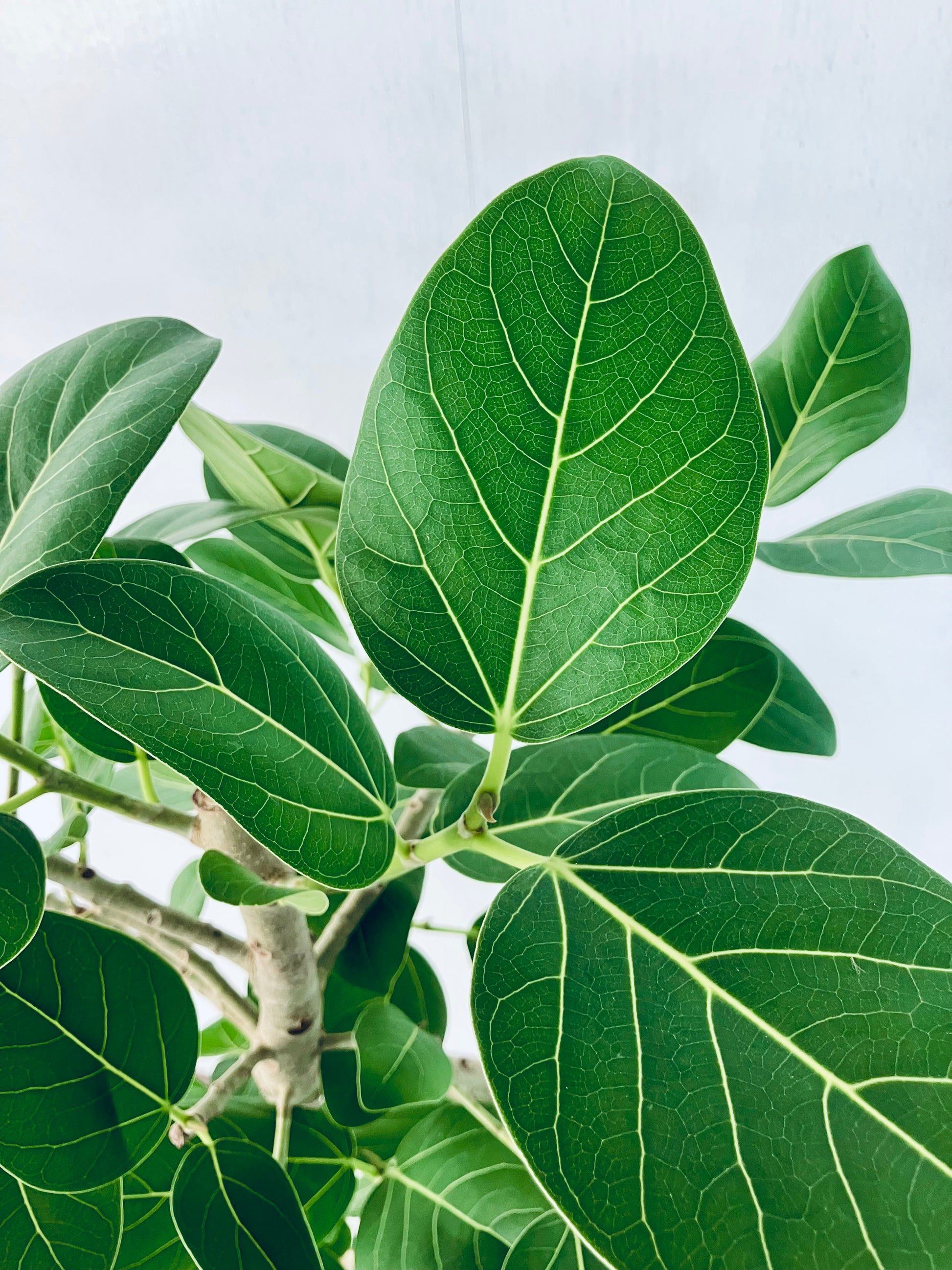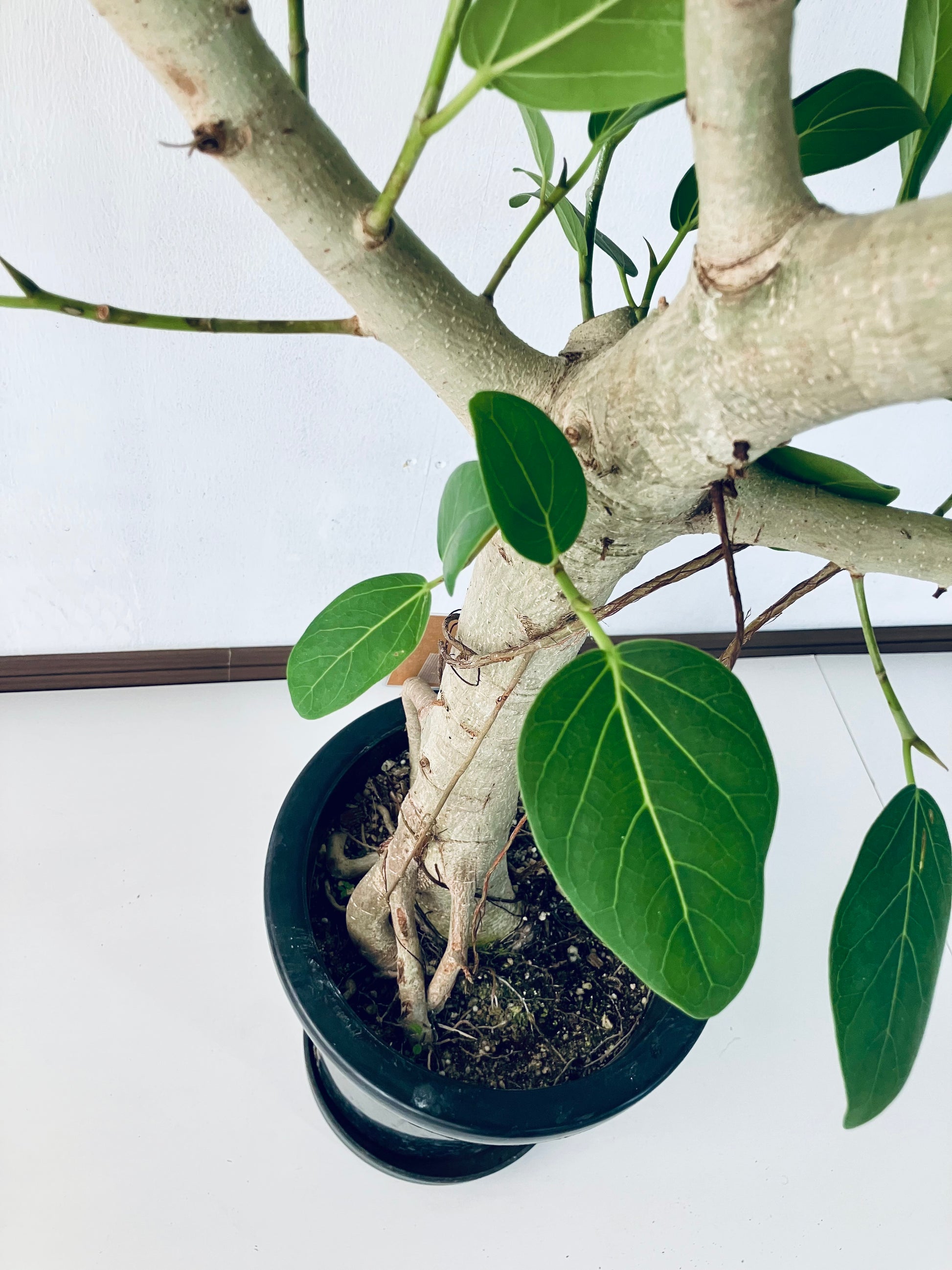 ベンガレンシスは丸い葉と白い幹が特徴の人気の観葉植物です。ゴムの木の仲間で生長が早く、育てやすい品種です。8号サイズは室内で十分な存在感のある大きさです。