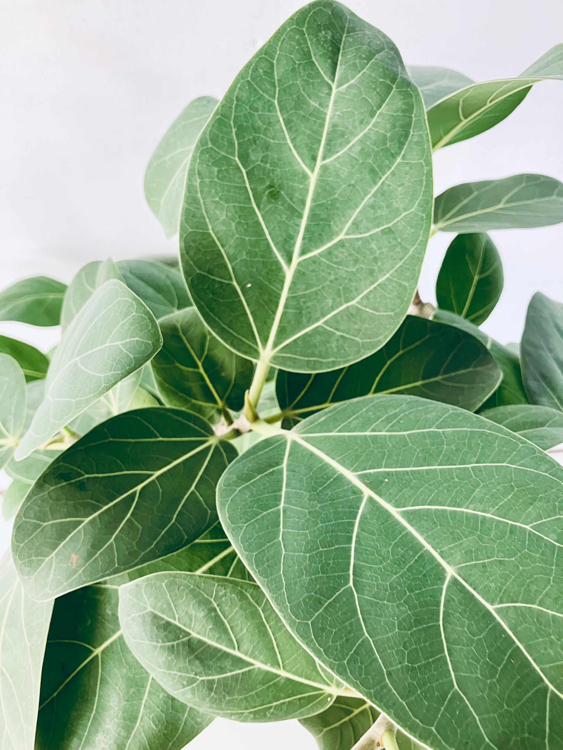ベンガレンシスは丸い葉と白い幹が特徴の人気の観葉植物です。ゴムの木の仲間で生長が早く、育てやすい品種です。8号サイズは室内で十分な存在感のある大きさです。