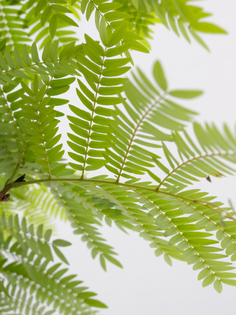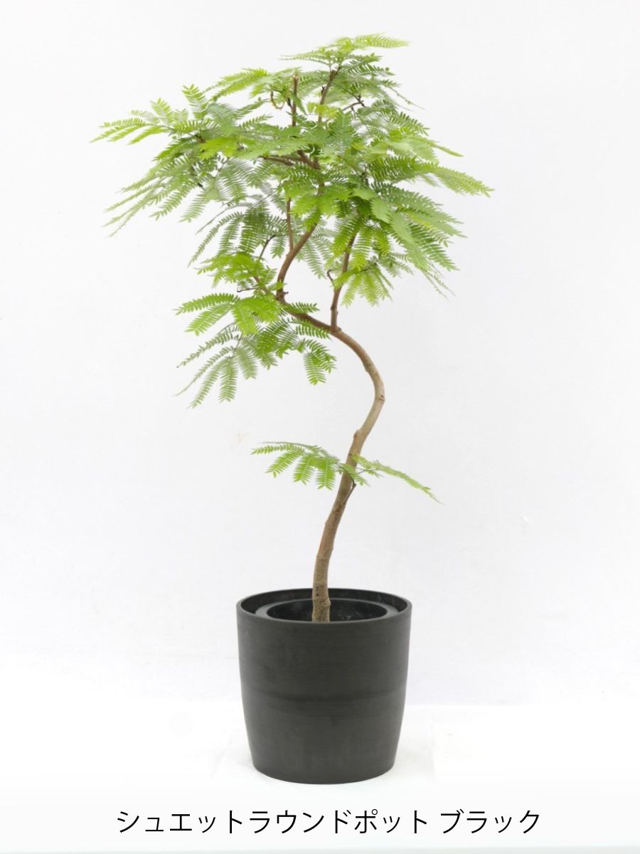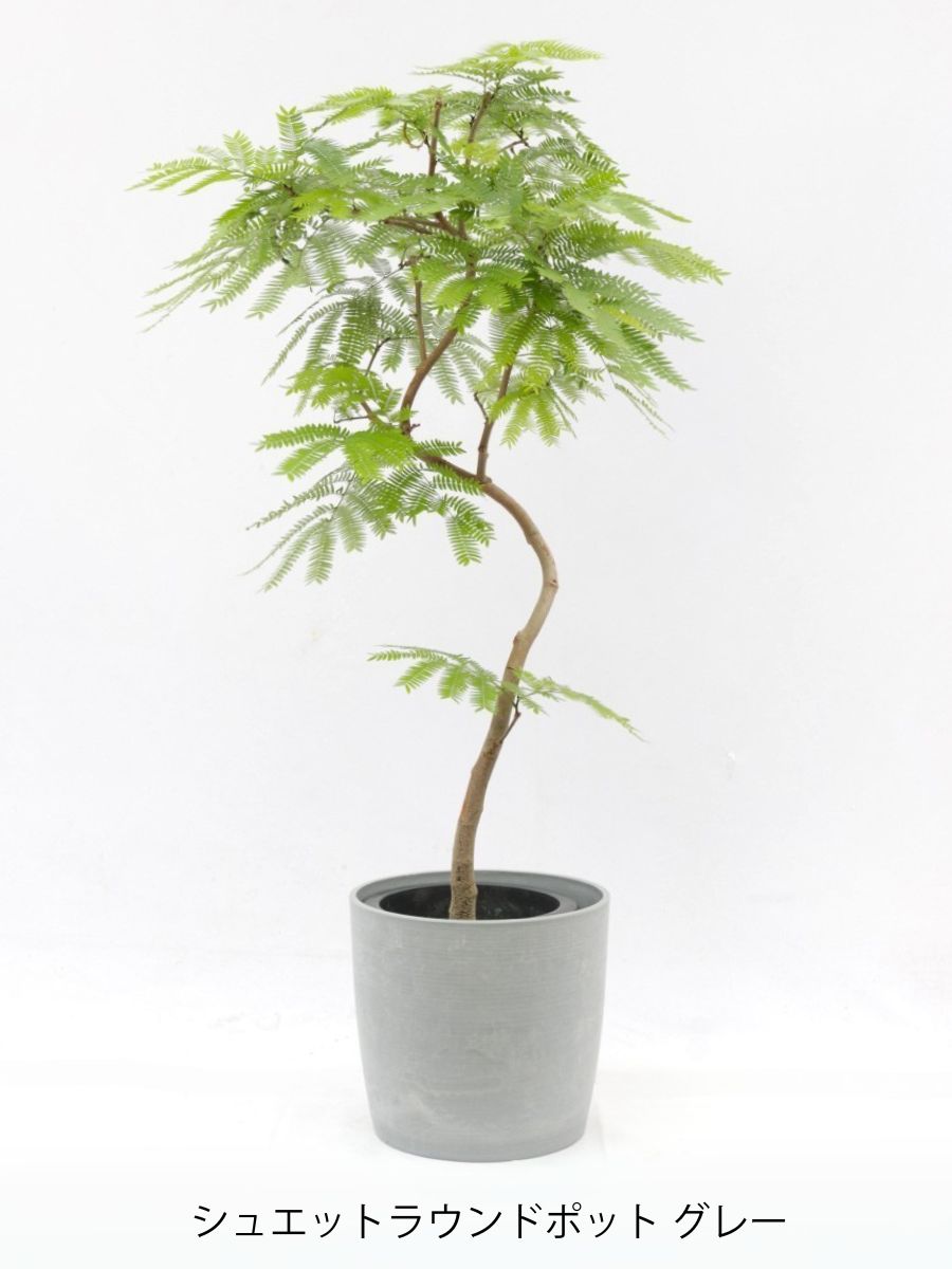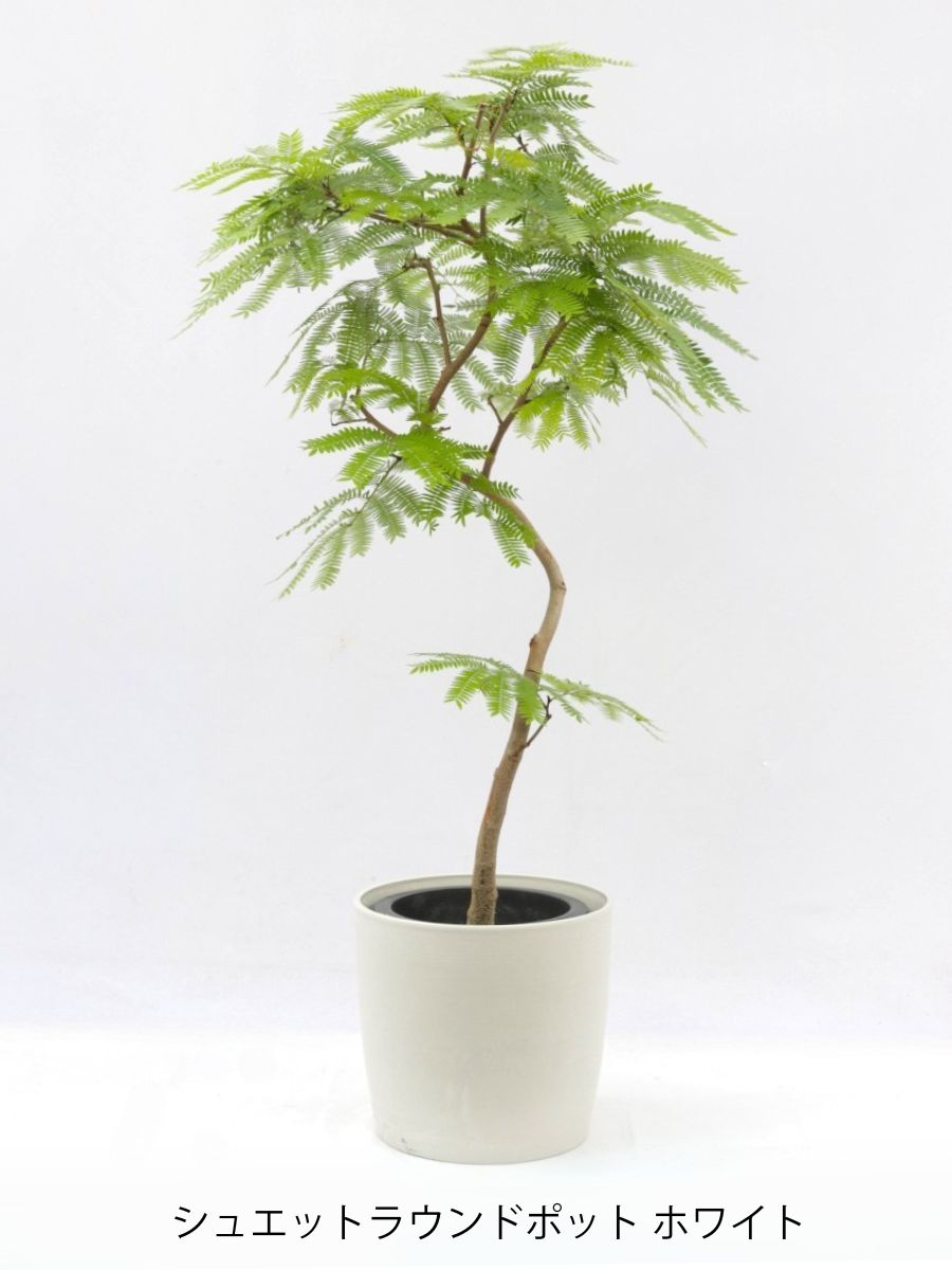 エバーフレッシュは涼しげな葉っぱが特徴の観葉植物です。別名ネムの木とも呼ばれ、夜になると葉が閉じます。水が大好きな植物です。8号サイズは室内で十分な存在感のある大きさです。