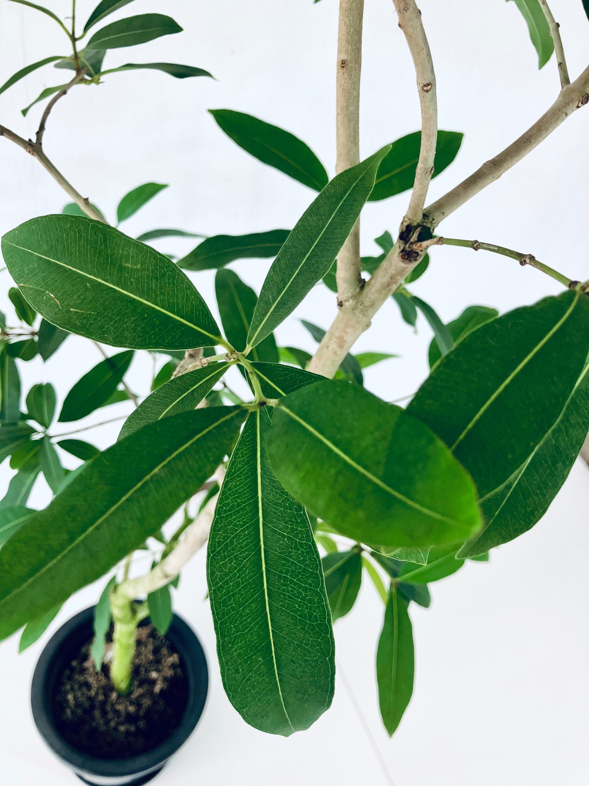 アマゾンオリーブは柔らかい雰囲気の葉っぱと白く綺麗な幹が魅力の観葉植物です。8号サイズは室内で十分な存在感のある大きさです。