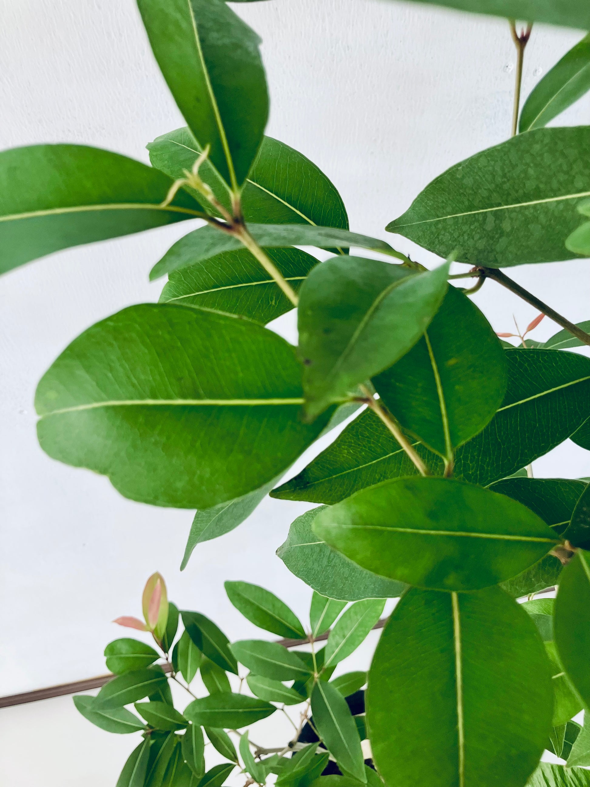 アマゾンオリーブは柔らかい雰囲気の葉っぱと白く綺麗な幹が魅力の観葉植物です。8号サイズは室内で十分な存在感のある大きさです。