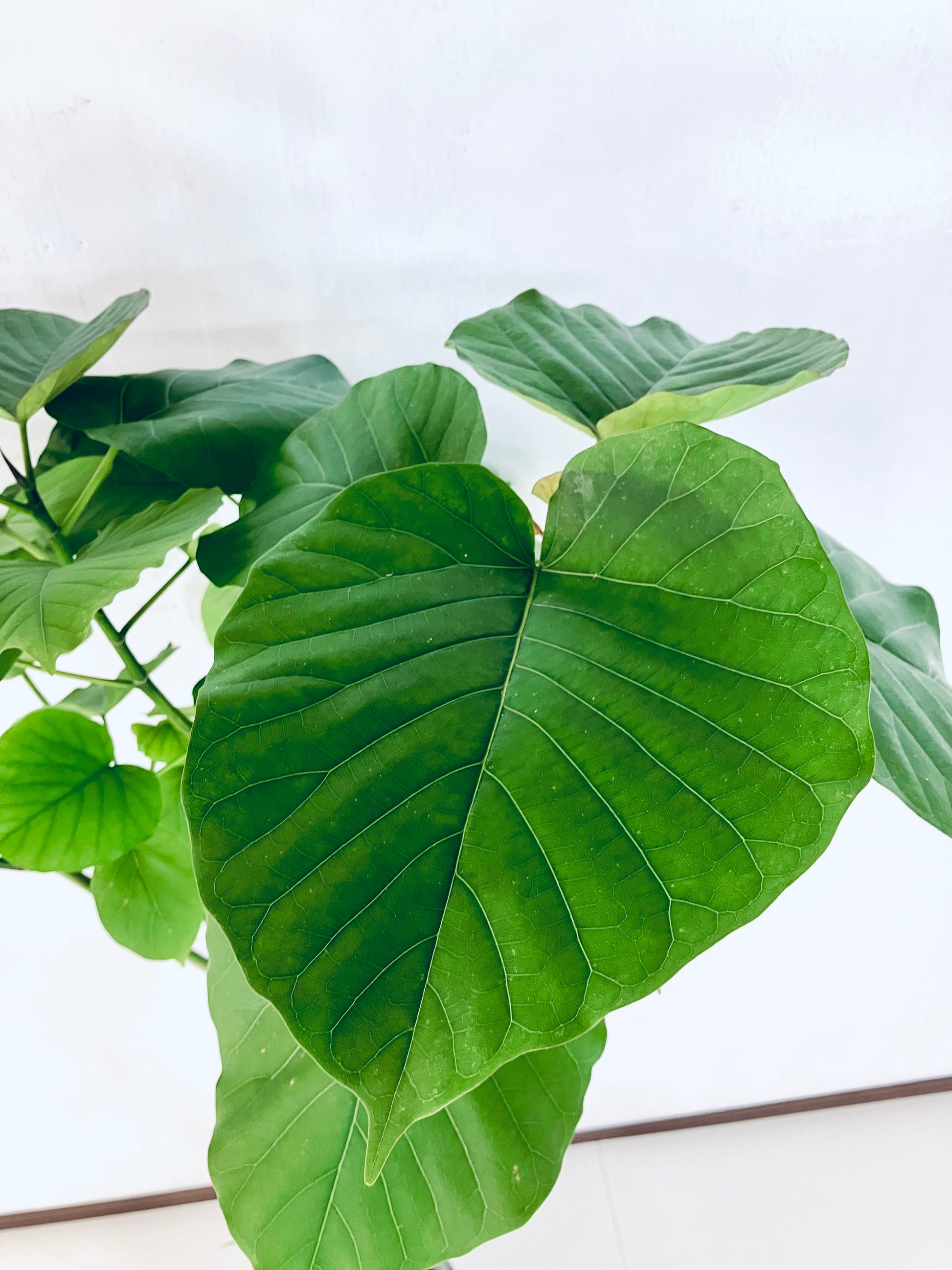 ウンベラータはハートの葉が可愛い人気の観葉植物です。ゴムの木の仲間で生長が早く、知名度もNO1の品種です。8号サイズは室内で十分な存在感のある大きさです。