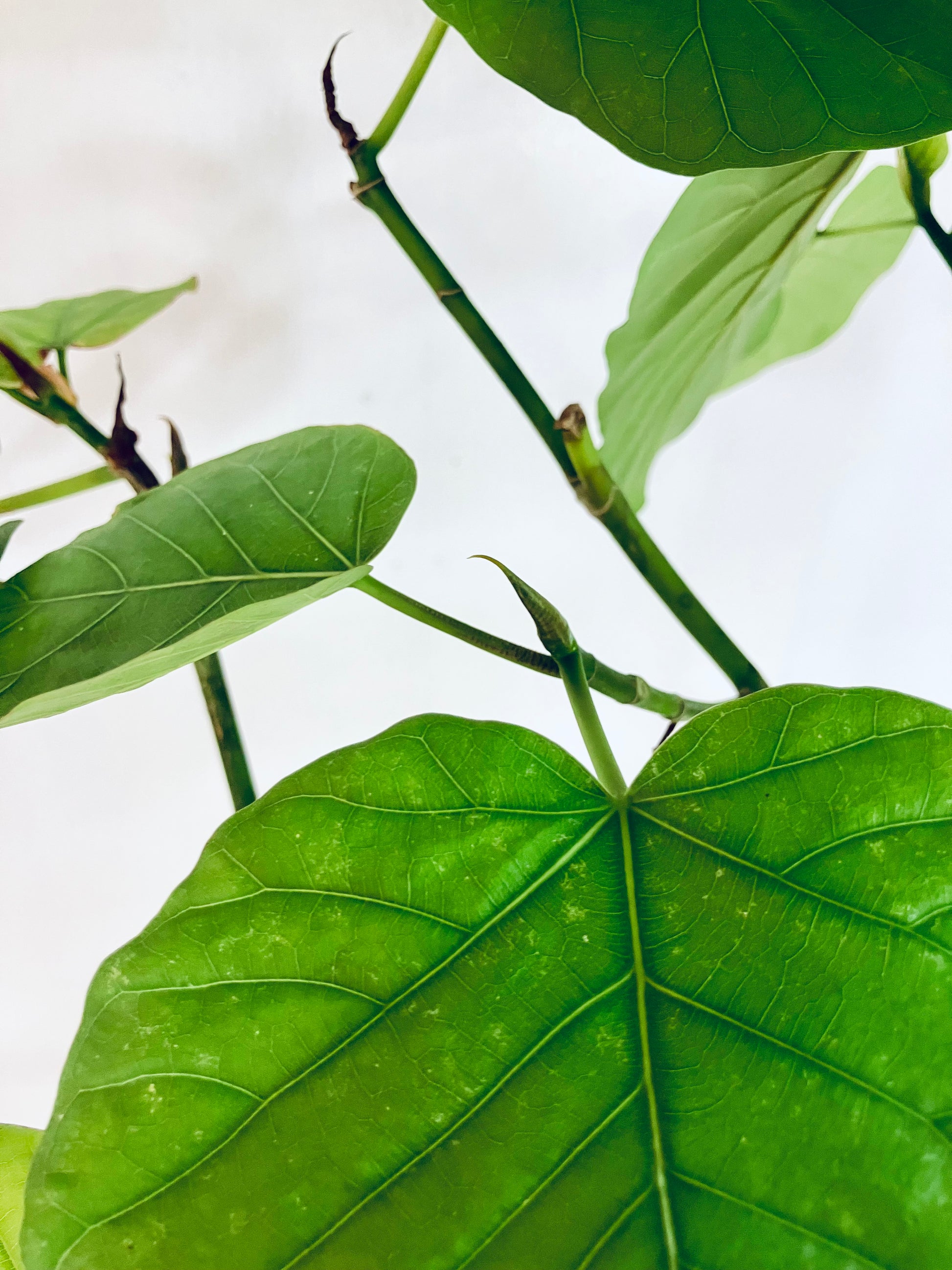 ウンベラータはハートの葉が可愛い人気の観葉植物です。ゴムの木の仲間で生長が早く、知名度もNO1の品種です。8号サイズは室内で十分な存在感のある大きさです。